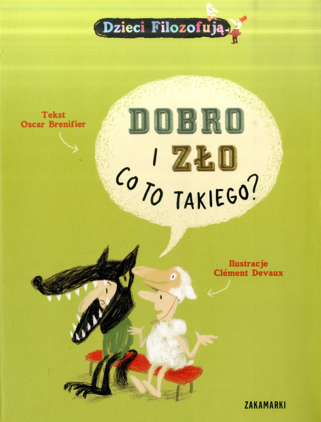 Dobro i zło, co to takiego? / Oscar Brenifier ; ilustracje Cl'ement Devaux ; przełożyła z francuskiego Magdalena Kamińska- Maurugeon. - Wydanie pierwsze, nakład czwarty. - Poznań : Zakamarki, [2018]. - [98] stron : ilustracje kolorowe ; 24 cm.